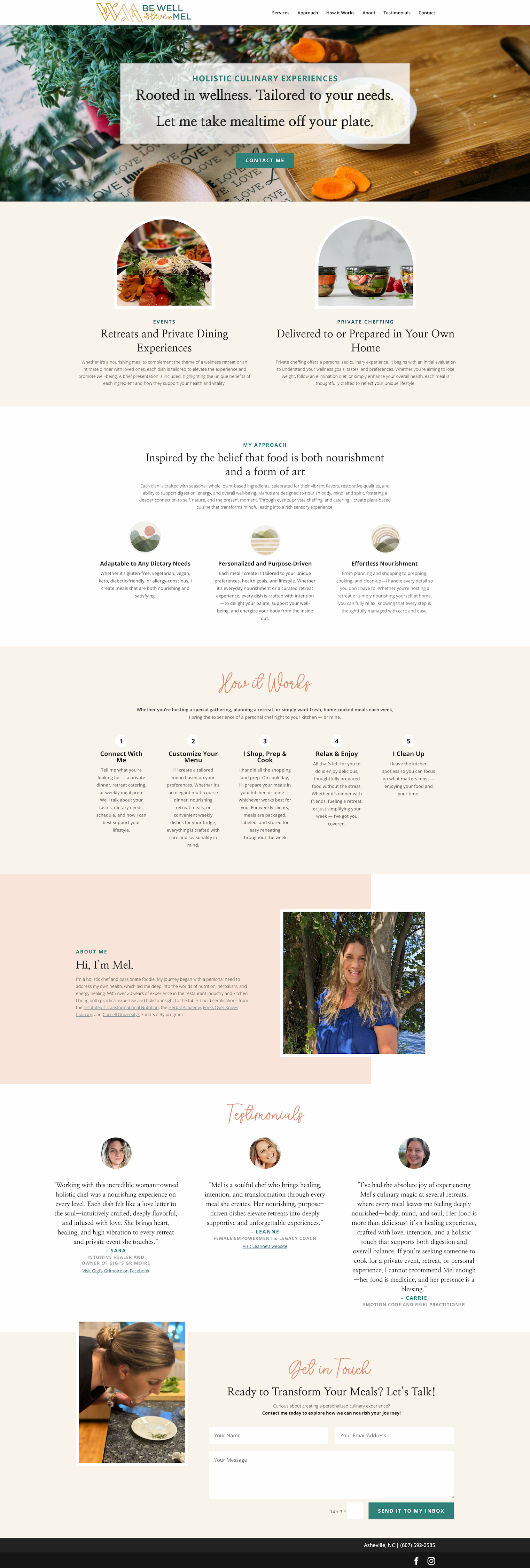 Designed and implemented the front-end of the BeWellLoveMel.com – Holistic Culinary Experiences website, a WordPress site showcasing a holistic chef’s services, retreats, and personalized nutrition offerings. I translated the visual concept into a responsive, user-friendly presentation layer using semantic HTML and modern CSS, ensuring a cohesive and engaging experience across devices.